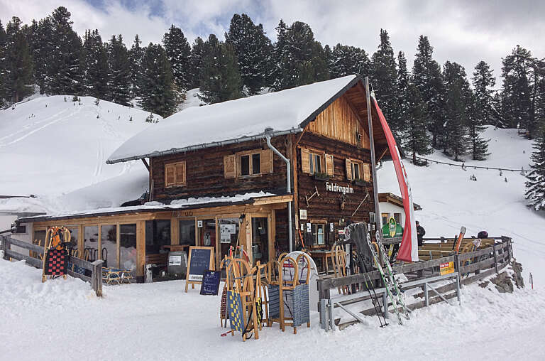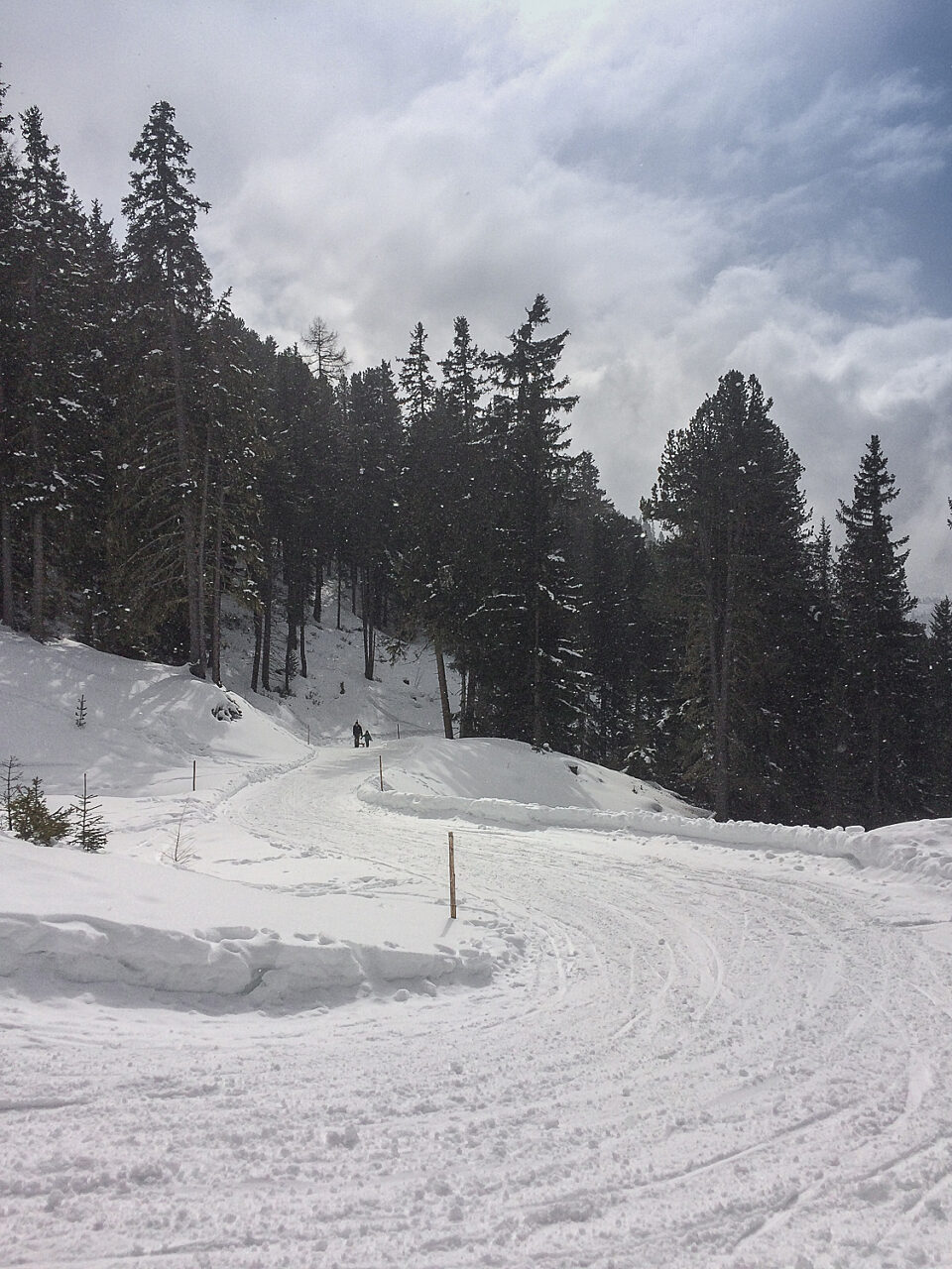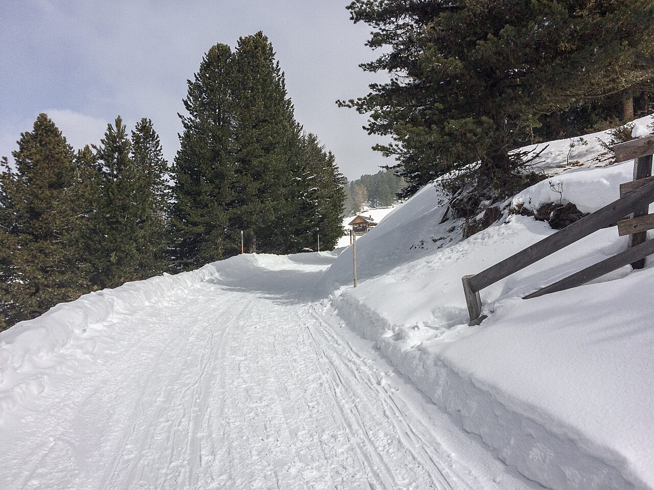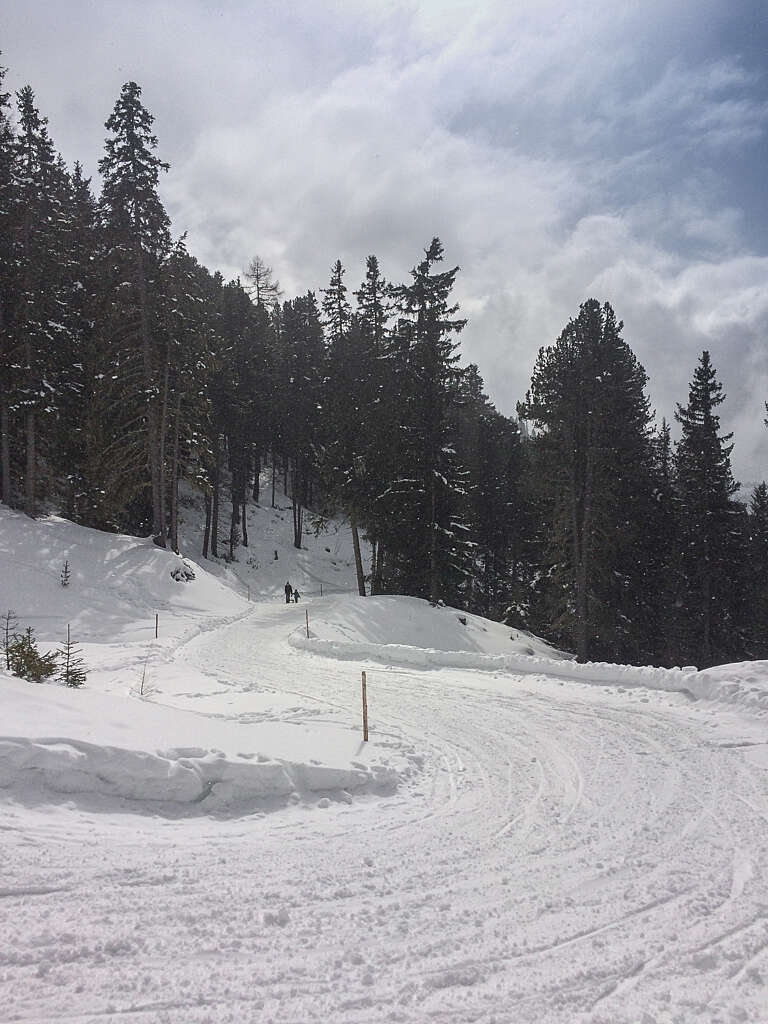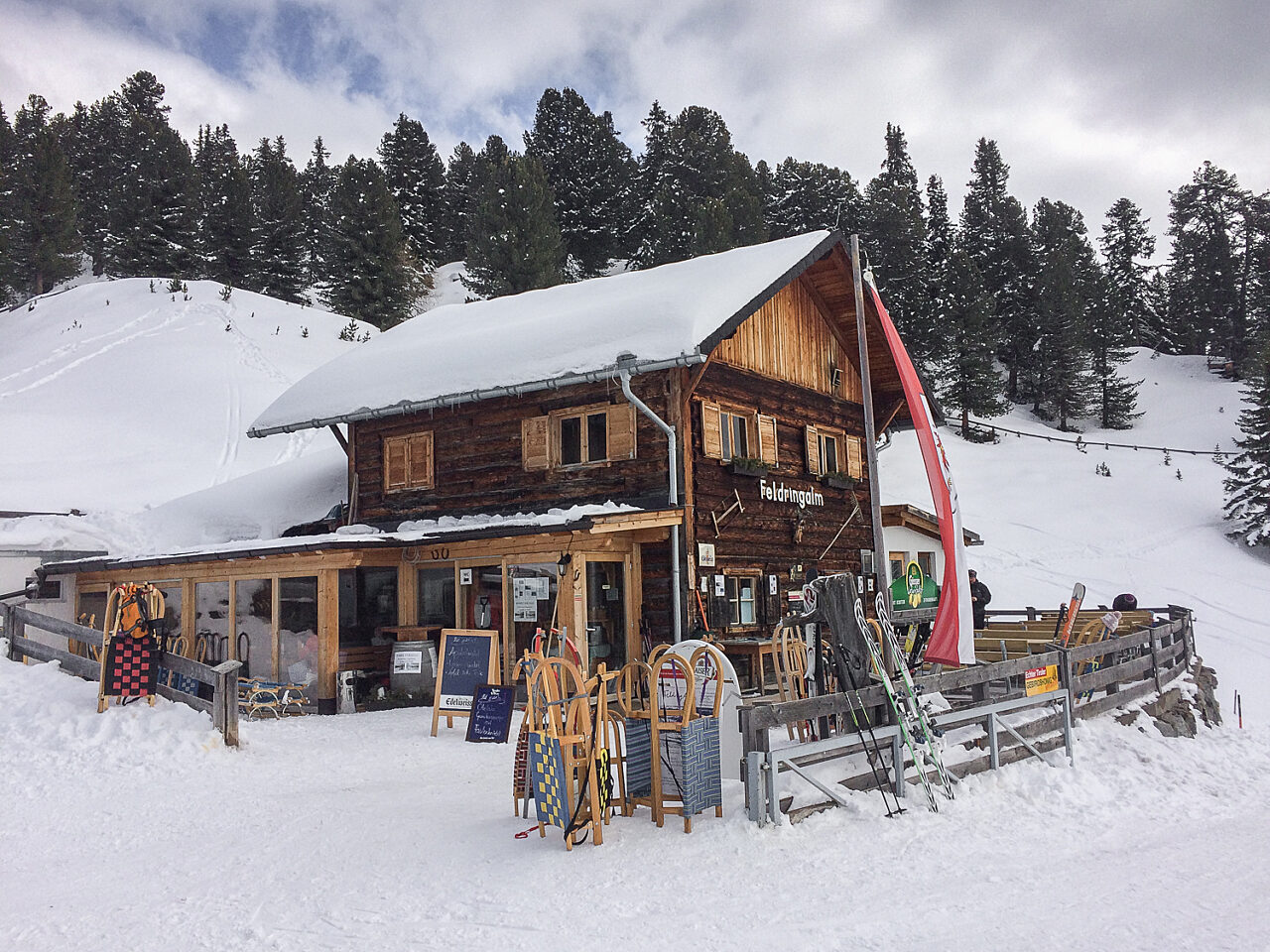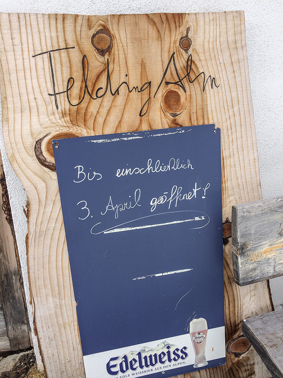 Rodelbahn in gutem Zustand, wettermäßig war heute alles dabei von leichtem Schneefall bis Sonne. Die Feldringalm hat noch bis einschließlich 3. April geöffnet.